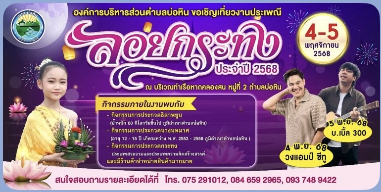 ประชาสัมพันธ์งานลอยกระทาง อบต.บ่อหินประจำปี 2568