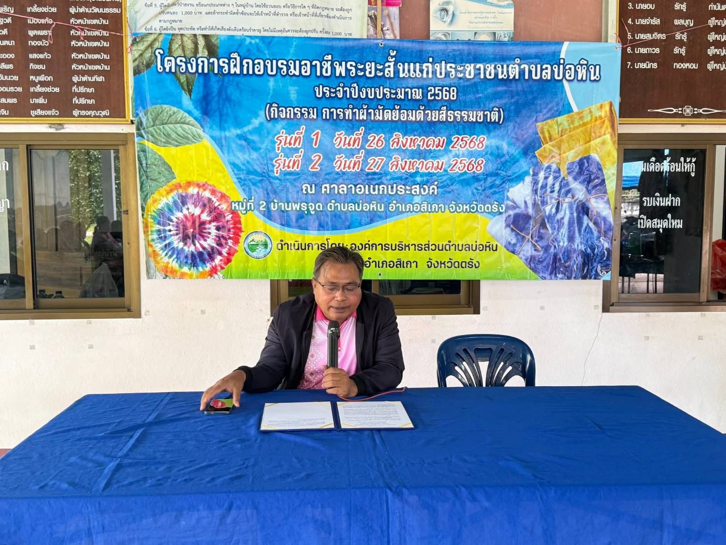 องค์การบริหารส่วนตำบลบ่อหิน จัดโครงการฝึกอบรมอาชีพระยะสั้นแก่ประชาชนตำบลบ่อหิน จำนวน 2 รุ่น รุ่นที่ 1 วันที่ 26 สิงหาคม 2568 รุ่นที่ 2 วันที่ 27 สิงหาคม 2568 ณ ศาลาอเนกประสงค์บ้านพรุจูด หมู่ที่ 2
